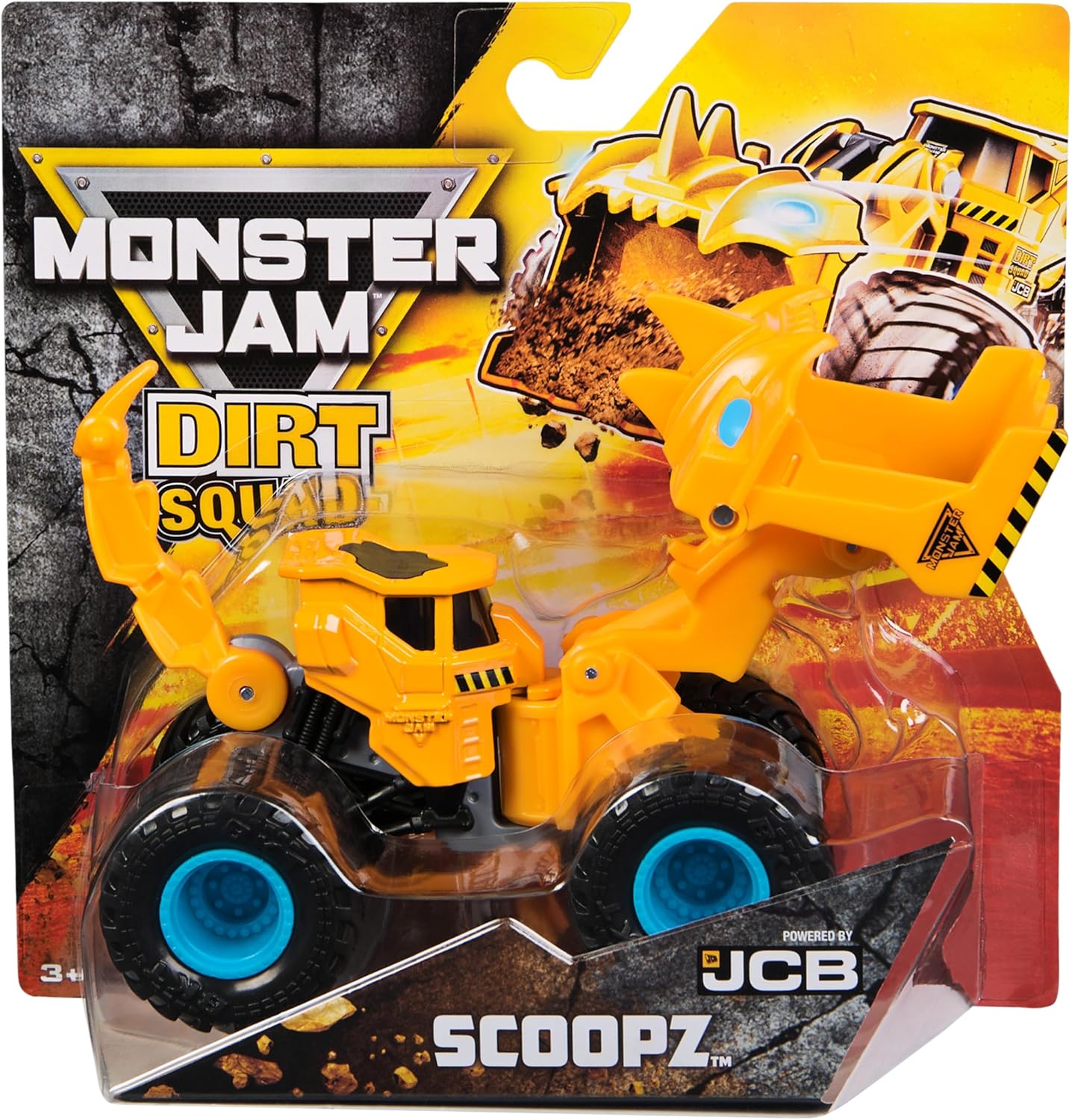 Monster Jam, Official Scoopz Dirt Squad Dump Truck Monster Truck with Moving Parts, 1:64 Scale Die-Cast Vehicle Toys for Boys 3+